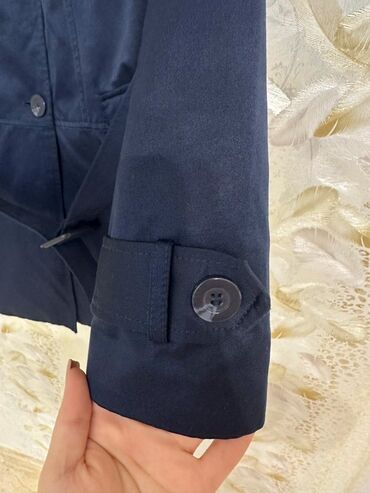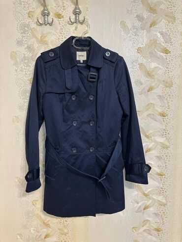 Qadın trençkot - Rəng: tünd göy, bej kontrast bəzəklər və kəmər - Model: ikiqat düyməli (double-breasted), qolsuzluqda düyməli qayışlı manjetlər - Uzunluq: baldırdan aşağı, klassik A-kəsim siluet ...