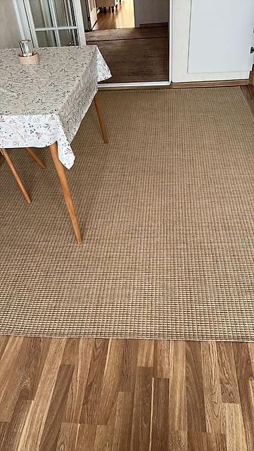 Minimalist açıq bej xalça Eni 2.50 uzunu 3 .50 - Rəng: açıq bej/ekru tonları - Üslub: sadə, naxışsız, zolaqlı tekstura ilə - Forma: - Təxmini ölçü: böyük ölçü (qonaq otağı və ya yemək otağı üçün uy...