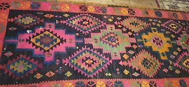 Təqdim etdiyimiz görüntüdəki əl işi kilim, Azərbaycan xalçaçılıq mədəniyyətində zəngin həndəsi naxışlar və simvollarla bəzədilmişdir. Bu cür xalçalar və kilimlər təkcə dekorativ əşya deyil, həm də qədim inancları və ailə dəyərlərini əks etdirən rəmzlər toplusudur.