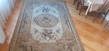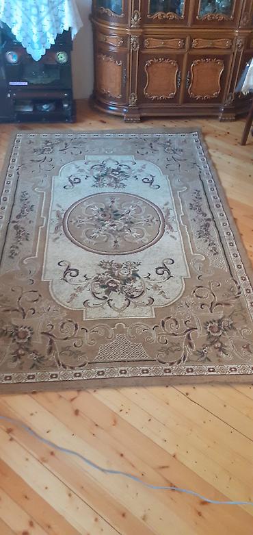 Xalça – 3x2 m ölçü Rəng: krem/bej tonları, nazik qızılı naxış vurguları Dizayn: mərkəzdə dairəvi motiv, kənarlarda klassik ornamentlər Material: yumşaq, sıx toxunuşlu süni lif qarışığı (foto əsa...