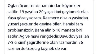 Köyneklerle baglı məlumat yazilib çevirin baxin. Qiymetler de yazilib