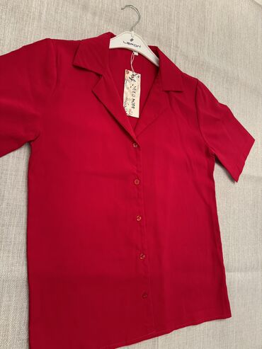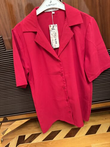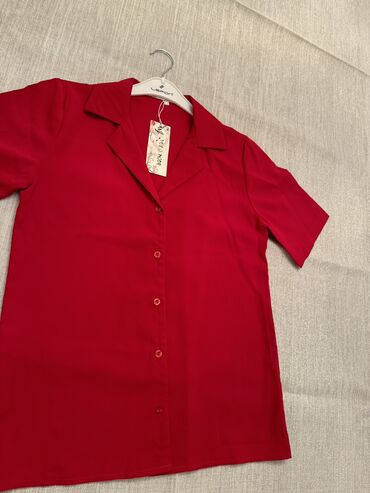 YeniQirmizi reng qisa qollu yaz ve yay aylarinda geyile bilecek koynek Rusiya istehsali