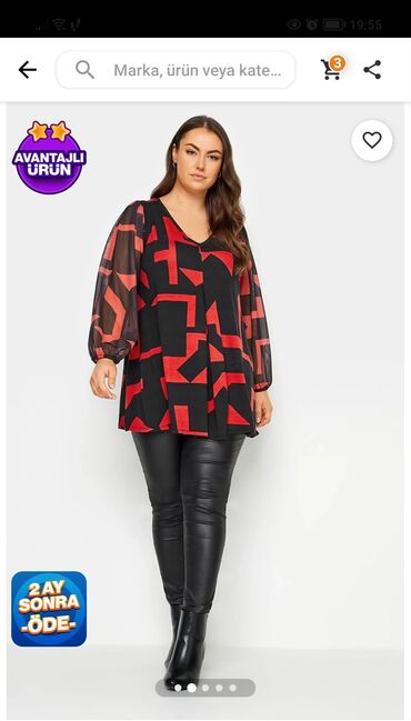 Fransadan alinib, hec geyinilmeyib, boyuk olculu xanimlar ucundur. 46-48 ölçülü xanimlar geyine biler. real aliciya endirim ede bilerem, Gence