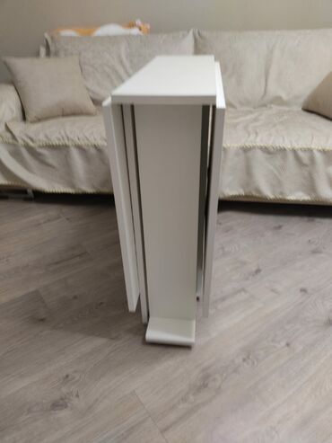 Qəhvə masaları – müasir dizayn, funksional rəflər Model 1: - Ölçü: 95×55×45 sm (şəkildə göstərilib) - Üst tabla: ağac naxışlı - Korpus: ağ rəng, iki tərəfli açıq rəf - Konus formalı ayaqlar - Kita...