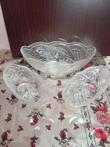 Zərif görünüşü ilə gündəlik istifadəyə və xüsusi qonaqlıqlara uyğun dekorativ şüşə qab dəsti.