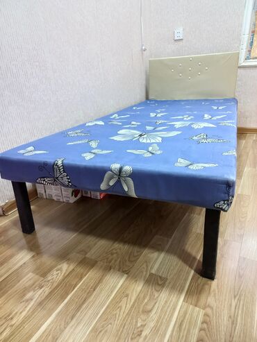 Tək nəfərlik çarpayı və döşək - Ölçü: təxmini tək nəfərlik (standart single) - Karkas: taxta əsaslı çarpayı altlığı, aşağıda dörd dayaq ayağı - Başlıq və ayaqlıq: sadə panel tipli - Döşək: üzəri k...