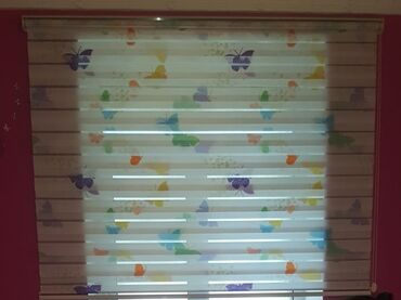 Uşaq otaqları və bağçalar üçün tematik zebra jalüz pərdələr - Model: zebra (iki qatlı, işıq keçirmə səviyyəsi zolaqların üst-üstə gəlməsi ilə tənzimlənir) - Nümunələr: kəpənək motivli, ürək motivl...