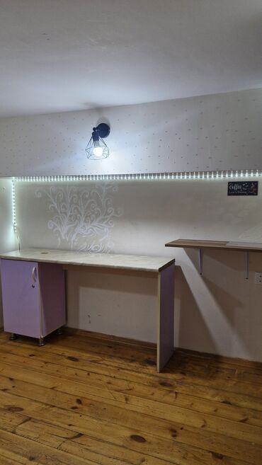 1 otaqlı studiya tipli kiçik mənzil/interyer - Sahə: 15 m² (şəkildə göstərilib) - Tavan: spot işıqlar, dekorativ gips-plintus, LED işıq xətti - Divarlar: yumşaq qərtmə effektli dekor panel və tekst...