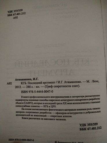 Təsvir: Peşəkar əks-kəşfiyyatçı və yazıçı olan müəllif gizli agentura fəaliyyətinin əsas üsullarını, obyektlərin işlənməsinə (SABRO) sızma texnologiyalarını və XX əsrin son üçdə birində aparıcı xüsusi xidmət orqanları — KQB və MİA/ÇRU — tərəfindən istifadə olunan metodları izah edir. Faktiki materiallara əsaslanan kitabda “kompozitorlar”ın — əməliyyat layihələrinin müəllifləri, agentləşdirilmiş zabitlər və könüllü icraçıların — rolları açıqlanır. Kütləvi oxucu üçün nəzərdə tutulub.