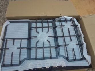 Qutu və qoruyucu materiallar üzərindədir. Markalar: KR Prestige (qaz paneli) və Öztürkler Plus (aspirator).