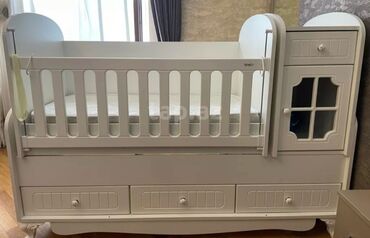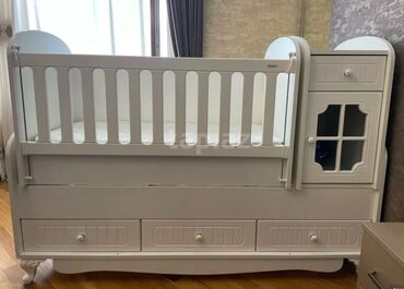 Uşaq beşiyi – çevik funksiyalı kombinə edilmiş model matrasi ilə birgə satılır Xüsusiyyətlər: - Material: ağ rəngli MDF/taxta konstruksiya, möhkəm karkas - Yanlıq: şaquli şüşəbəndsiz barmaqlıq, sür...