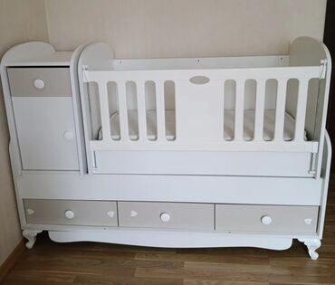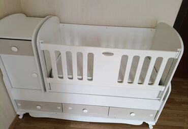 Uşaq beşiyi az istifade olunub iki siyirməli həm oğlan həm qız üçün istifade oluna biləcək rəngdedir işləyir heç bir problemi yoxdur matrası da var ön tərəfini aşağı yendirməkdə olur Sarayda yerləş...