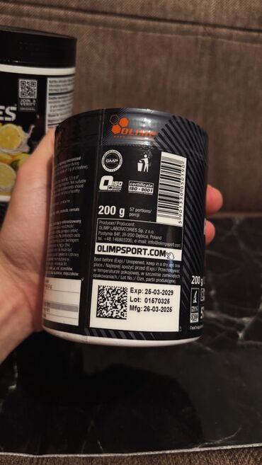 201 - 500 gORIGINAL Olimp Creatine. Polşadan alınıb. Keyfiyyətini istifadə edən bilir. 3 ədəd qalıb. Sadə- 40 manat Limonlu- 45 manat QR kod ilə originallığını yoxlaya bilərsiniz. Zəmanət verilir. 200 və 250 qram. 2 ay rahat gedir. 2029-cu ilə qədər istifadə müddəti var.