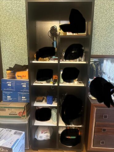 - Açıq rəfli kitab/aksesuar dolabı (iki sütunlu, çoxsaylı rəflər)