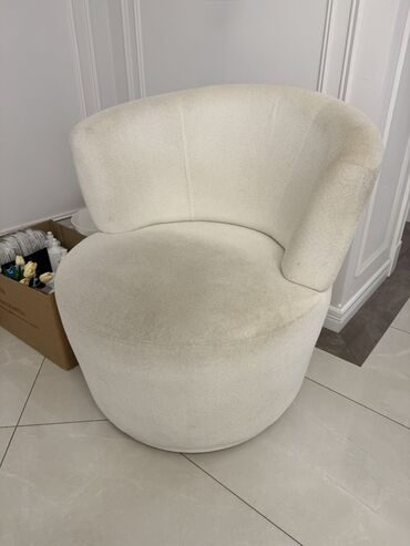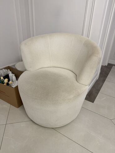Açıq krem rəngli, dairəvi oturacaqlı və yarımdairə formasında arxa dayaqlı kreslo.