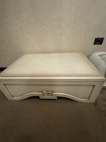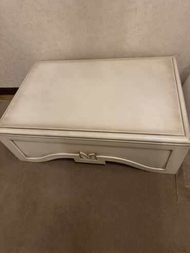 Klassik üslubda qonaq otağı üçün çay masası (2 rəng seçimi): - Qara-qəhvəyi masa: üst hissəsi parlaq dekor paneli ilə, oyma naxışlı bəzəklər, əyri (kabriol) ayaqlar. - Ağ-krem masa: üst hissəsi mer...