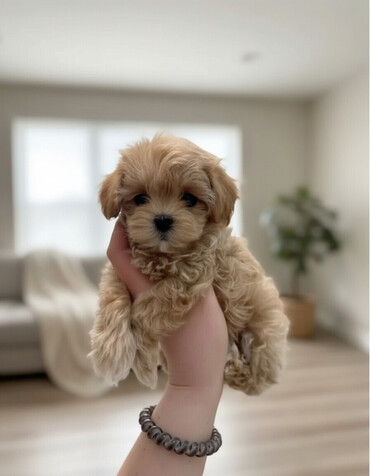 Miniatür pudel tipli balaca it - Rəng: açıq qızılı/şam relifi - Tükləri: sıx, qıvrım, hipoallergen quruluş; az tökülür, mütəmadi kəsimə uyğundur - Ölçü: kiçik, mənzil və ev şəraitinə uyğun - Xarakt...