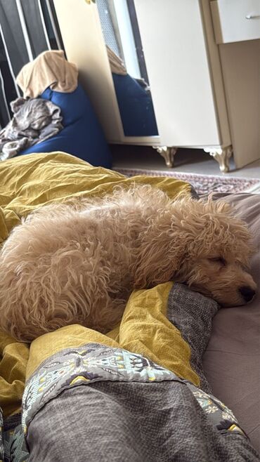 Şirin, qıvırcıq tüklü kiçik ölçülü it - Cins: pudel tipli (qıvırcıq tüklü, hipoalerjen xüsusiyyətli tüklər) - Rəng: açıq qızılı/krem - Xarakter: mehriban, oynaq, ev şəraitinə uyğun, insanlarla ünsi...