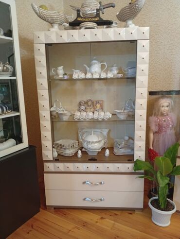 Şəkillərdə 2 ədəd uyğun vitrin (biri enli, biri dar formatda) göstərilir. Oturma otağı, qonaq otağı və yemək zonasına uyğun zərif vitrin mebeli. Qablar vitrinə daxil deyil.