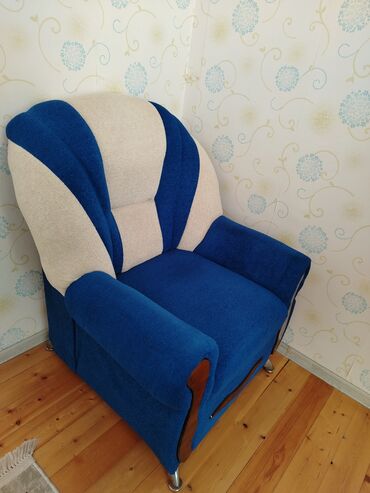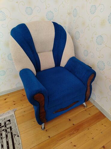 Rahat kreslo – mavi və krem rəng kombinasiya