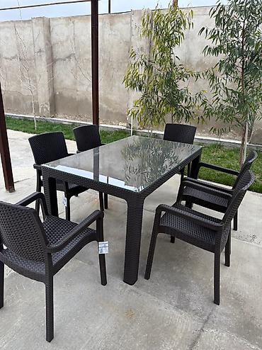 • Yeni, Dördbucaq masa, 6 stul, Açılmayan, Stullar ilə, Plastik, Türkiyə