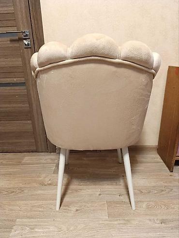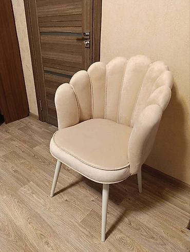 Şellək formalı arxa dayağı olan, krem rəngli aksent kreslo.