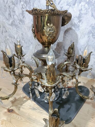 - İşıqlandırma: şam formalı patronlarda E14 tip lampalar; fotoda LED “şam” lampaları quraşdırılıb