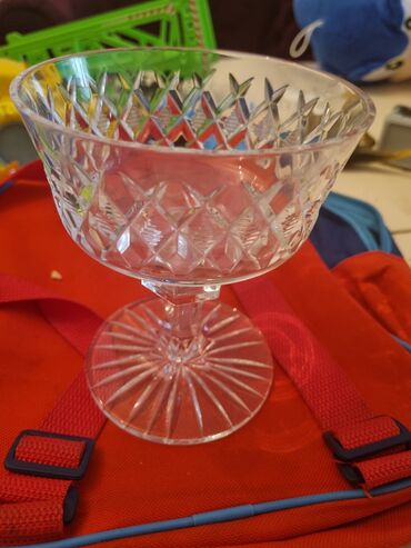 Şüşə/qablama: 2 ədəd büllur şirniyyat qabı (piyalə tipli, ayaqlı). Xüsusiyyətlər: - Material: qalın, şəffaf büllur şüşə - Dizayn: klassik relyef naxışlar – rombvari kəsimlər, dalğalı zolaqlar və y...