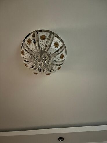 tam işlək vəziyətdə lampucka vurulmasa da özündən isiqi var pultla da idarə olunur mahnıda qoşmaq olur Dekorativ tavan plafonu – şüşə və akril elementli, dairəvi formalı - Üslub: klassik və moder...