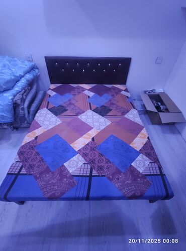 Qaldırılan mexanizmlə sandıqlı yataq dəsti. - Ölçü: 160 x 200 sm - Başlıq: düyməli, yumşaq kapitonajlı mavi parça ilə - Korpus: ağ rəng, geniş daxili sandıq sahəsi - Çarpayı üstü metal karkaslı, qa...
