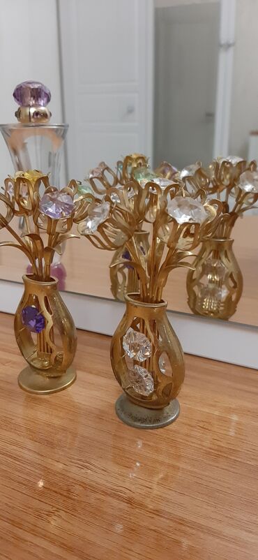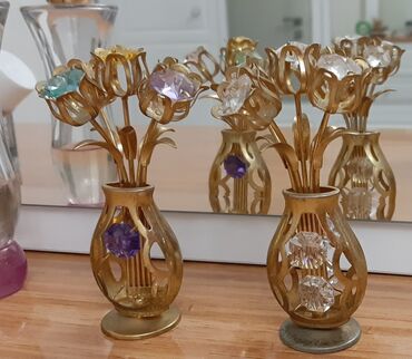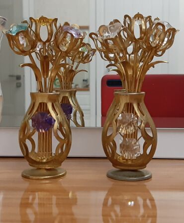 QızılıQızılı rəngdə, dekorativ güllərdən ibarət iki ədəd bəzək əşyası. Hər bir güldan qızılı rəngdə olub, içərisində rəngli və şəffaf daşlarla bəzədilib. Ev və ya ofis dekorasiyası üçün