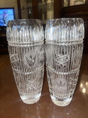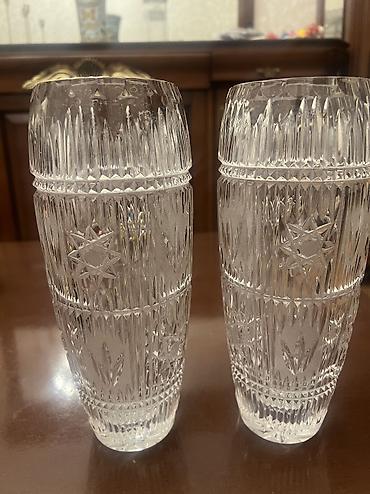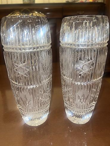 - 2 ədəd hündür xrustal güldan: Dərin oyma naxışlar, ulduz və şaquli kəsim ornamentləri, işığı gözəl sındıran qalın şüşə. Kokteyl, sərinləşdirici içkilər və ya süfrə bəzəyi üçün uyğundur.