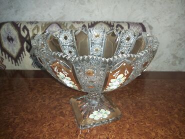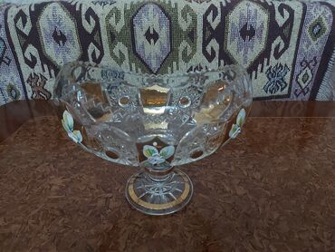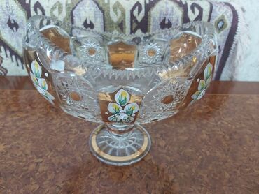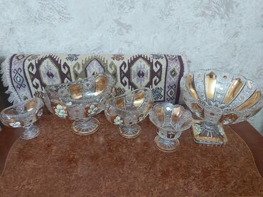 Bu dəstə müxtəlif ölçülü beş ədəd kristal meyvə qabı daxildir. Hər bir qab şəffaf kristaldan hazırlanmışdır və qızılı rəngli naxışlarla, eləcə də ağ və yaşıl rəngli çiçək motivləri ilə bəzədilmişdir. Qablar oyma detallara malikdir və bəziləri dayaq üzərindədir. Bu dəst meyvə, şirniyyat və ya digər qəlyanaltıların təqdimatı üçün uyğundur. Zərif dizaynı ilə istənilən masanın bəzəyinə çevrilə bilər.