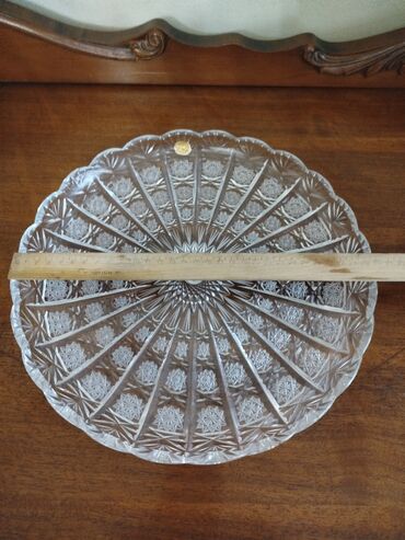 Bu təqdim olunan xrustal qab, dərin, dairəvi bir dizayna malikdir və müxtəlif naxışlarla bəzədilmişdir. Qabın mərkəzindəki dizayn, bir günəşi xatırladan mərkəzi bir hissədən və ətrafında dalğavari ...
