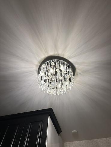 - Dizayn: Dairəvi xrom əsas və çoxsaylı şəffaf kristal asqılar. Kristallar işığı çoxşaxəli qıraraq tavanda dekorativ naxış effekti yaradır.