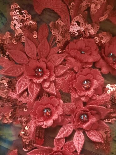 Məhsul: Payetli tül parça - Material: incə, şəffaf tül əsasında sıx naxışlı payetler tünd göy reng 1m-1:70. 15 m