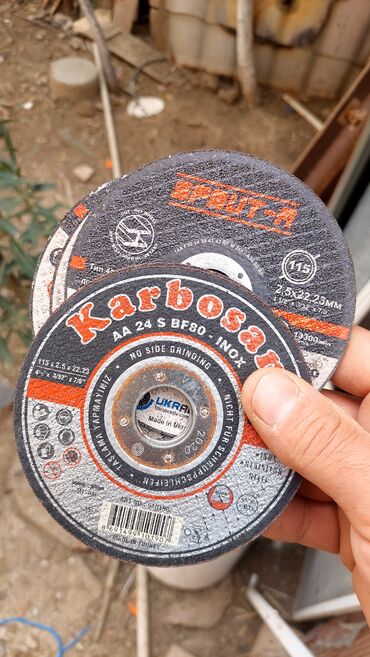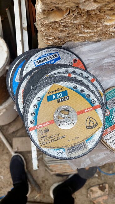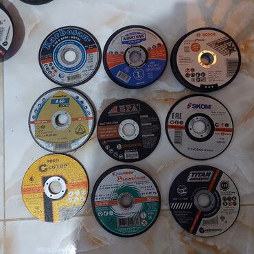 Dəstdə şəkillərdə görünən müxtəlif istehsalçıların 115 mm kəsici diskləri mövcuddur.