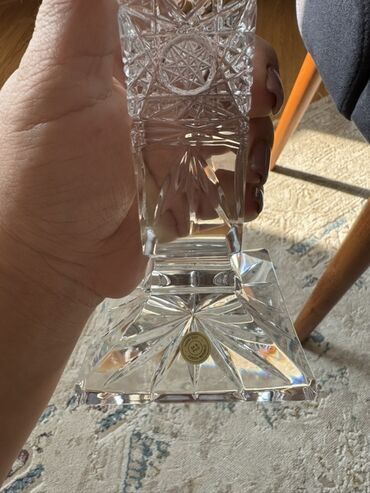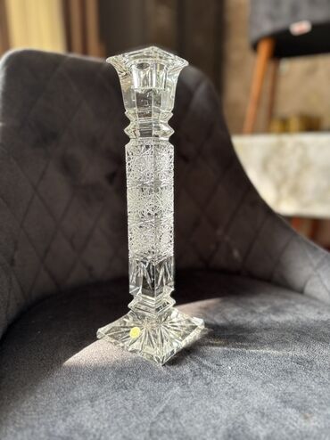ŞüşəKəsimli kristal şamdan.Cexiyadan almisam bakidan yox yeni 180dollara amma maddiyata gore satiram..cehiz alan qizlar ucun goyden duwmedi..