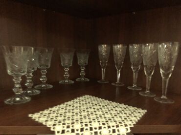 - Dəst tərkibi: 5ədəd qədəh hündür, incə ayaqlı (şampan/likör üçün), 5 ədəd daha enli kasa və qısa, dekorativ ayaqlı (desert şərabı/likör üçün).