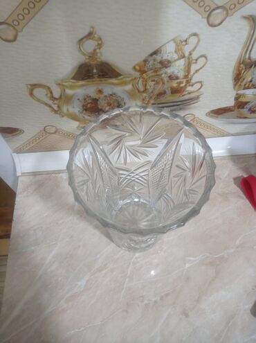 - Material: şəffaf qalın şüşə (kristal üslubunda kəsim naxışları)