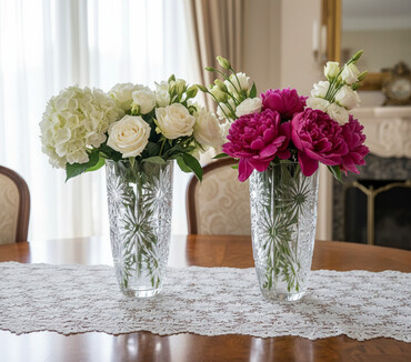 Kvars kristal vazalar dəsti - 2 ədəd kristal vaza: biri hündür və incə silindrik forma, digəri geniş açılı kəsimli klassik dizayn - Dərin kəsim naxışlar, parlaq şəffaflıq və işıqda gözəl qırılmala...