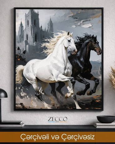 Kətan tablo xidmətı – istəyə uyğun dizaynlar - Material: yüksək keyfiyyətli kətan üzərində rəqəmsal çap - Mövzular: klassik avtomobillər, təbiət və gecə səması, at kompozisiyaları və s. - Çap keyf...