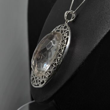 Mavi 30 karat tebii Akvamarin qaşi ,kuşon kəsimli böyük daşlı gümüş kulon 925 prob. Bu kulon gündəlik istifadə və ya xüsusi günlər üçün zərif bir seçimdir.