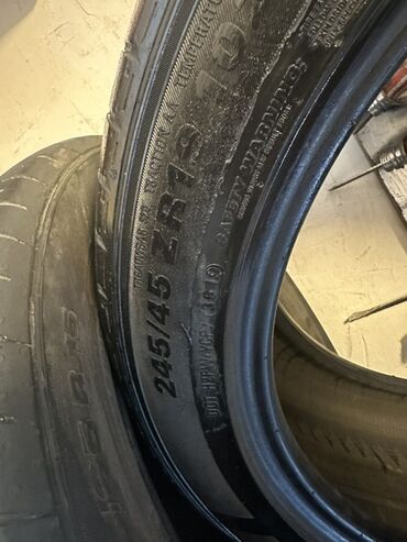 - Şin üzərindəki işarələr: 245/45 ZR19, təhlükəsizlik xəbərdarlıqları və DOT nişanları görünür
