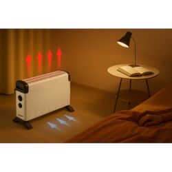 O, konveksiya əsasında işləyir: içəridəki qızdırıcı element öz-özünə yüksələn havanı qızdırır, bütün otaqda xoş və rahatlıq verən istilik təbəqəsi yaradır. Bunun sayəsində qaralamalara səbəb olmur, havanı qurutmur və demək olar ki, səssiz işləyir - istənilən otaqda gündəlik istifadə üçün idealdır.