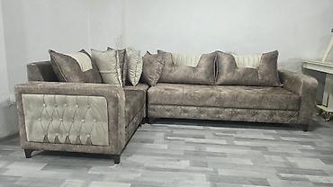 - Dizayn: L formalı künc divan, klassik və müasir üslubun qarışığı. Ön hissə və yan panellərdə kapitone dekoru, incə düyməli işləmə.