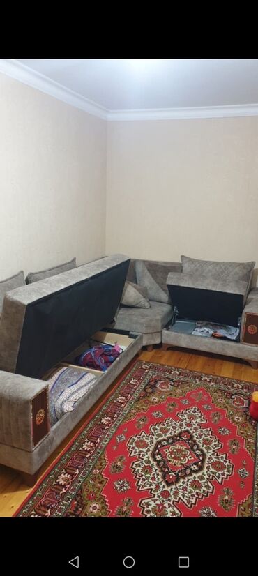 Künc divan dəsti - Forma: L-şəkilli künc divan, 3 hissədən ibarət modul quruluş. - Mexanizm: Açılıb-yığılan funksiyaya malikdir; ön hissə irəli çəkilərək yatacaq sahəsinə çevrilir. - Saxlama: Alt ...