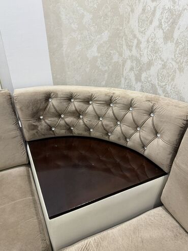 - Material: yumşaq, məxmər tipli parça oturacaq və bel hissələri; aşağı və yan hissələr krem rəngli dərimsi material ilə işlənib.