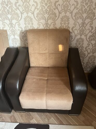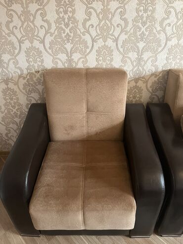 Başlıq: 2 ədəd kreslo, 1 ədəd divan (bazalı) – super vəziyyətdədir Təsvir: - Dəst: 1 ədəd üçnəfərlik divan + 2 ədəd kreslo - Divan bazalıdır – oturacaq hissəsi altında geniş saxlanma bölməsi - Rən...