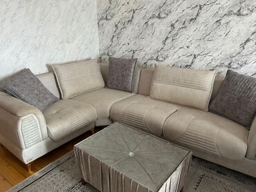 - Forma: L-şəkilli künc divan, geniş oturacaq sahəsi